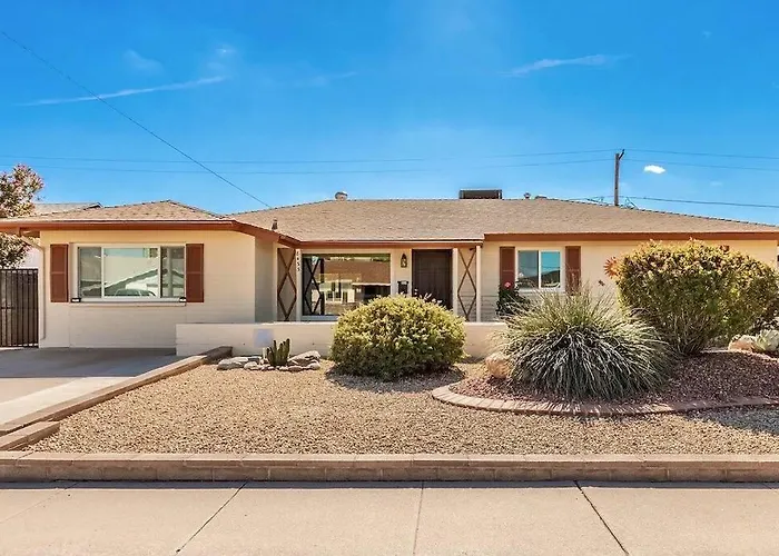 De luchthaven Phoenix Sky Harbor is binnen 16 minuten rijden te bereiken en natuurattracties zoals het Evelyn Hallman Park liggen op 10 rijminuten verderop. Sportliefhebbers zullen ook genieten van de nabijheid van het Scottsdale Stadium, gelegen op circa 2 km afstand. De 2-badkamer villa is gelegen op circa 10 minuten met de auto van Escape the Room AZ en op 25 minuten loopafstand van uitgaansgelegenheden zoals Casino Arizona.